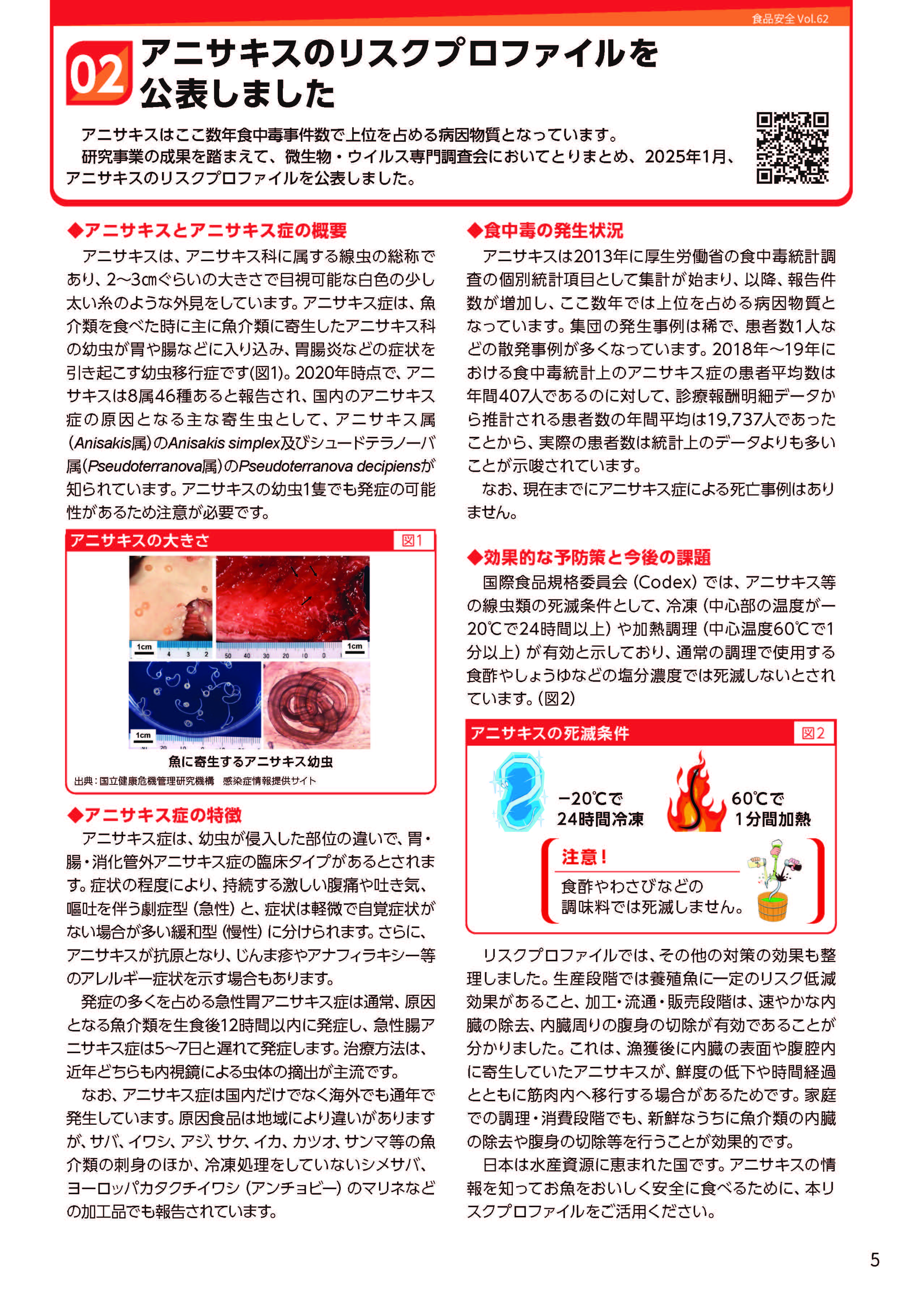ホーム > 動画配信などビジュアル資料 > 広報誌『食品安全』 > 第62号 > アニサキスのリスクプロファイルを公表しました
